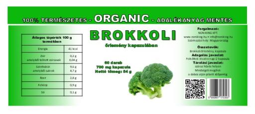 "Összetevők: 100% szárított brokkoli őrlemény, zselatin kapszulában (700 mg / kapszula).
