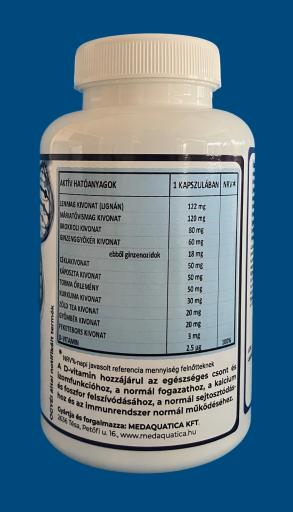 A 12 az 1-ben Komplex a gondosan válogatott, növényi és esszenciális hatóanyagok kombinációja, amely a mindennapi védelem esszenciális alapját biztosítja. A termék a legfontosabb esszenciális D3-vitamin mellett tartalmazza a legmodernebb antioxidáns vegyületeket és gyógynövényeket.