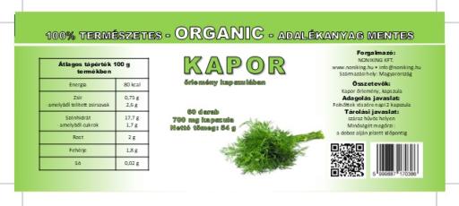 Kapor mag őrleményt tartalmazó étrend-kiegészítő. A kapor hagyományosan támogatja az emésztést, és hozzájárulhat az emésztőrendszeri komfortérzet fenntartásához (pl. bélgázok esetén).